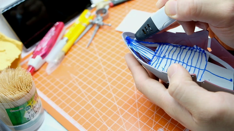 이번 작업의 특이점은 3D펜을 이용해서 내부프레임의 형상을 뽑아내 프레임 제작시 조금 손쉽게
