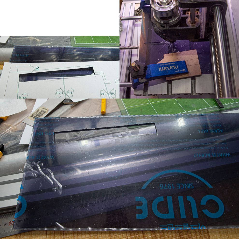 그런데, 아크릴 자르는 것이 장난 아니더군요? 칼질 여러번 하려고 해도 주위가 빠각빠각 부서져나가고 힘도 보통 줘야 해서 인간의 힘으로 할 수 있는 게 아니더군요. 그래서 여기도 CNC 를 써봤더니 사진처럼 깔끔하게 잘려서 안도했습니다.