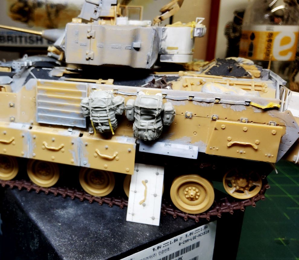 차체상하부가 분리되지 않기 때문에 제작단계에서 궤도(AFV Club 제품)와 바퀴를 완전히 고정시켜놓은 상태입니다. (도색하려면 좀 귀찮겠지만 추후 합치는 과정에서 생길수 밖에 없는 데미지를 없애기 위한 선택입니다.)