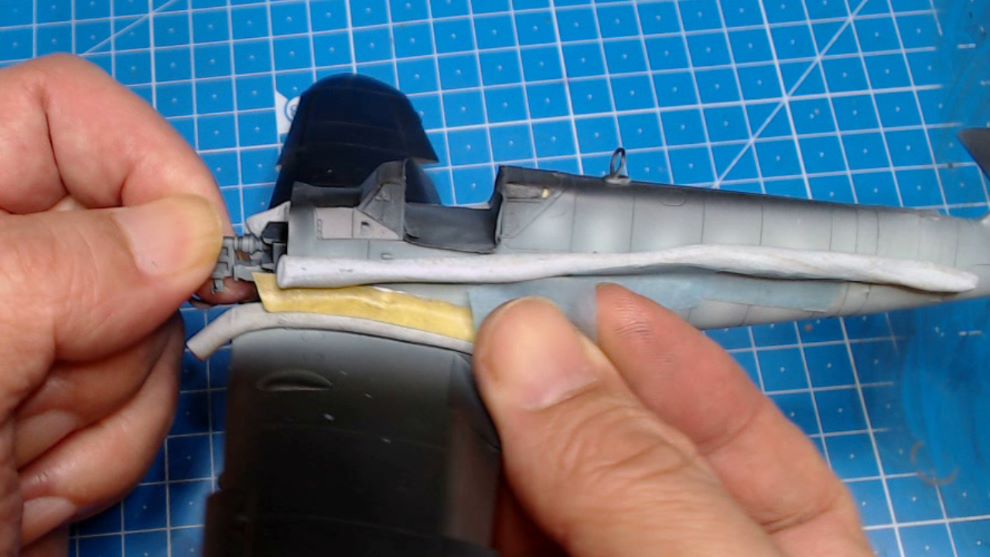 BF109의 조립시 유의해야하는 사항은 동체의 상하부에 있는 페널라인을 퍼티로 메꾸면 안됩니다. 실기제작시 후세의 모델러들이 고생할까봐 동체 상하부에 페널의 접합부를 만들어 놓으신 messerschmitt박사님께 감사를 표하며 무수지접착제로 살짝 붙혀놓기만 하면되는데.....