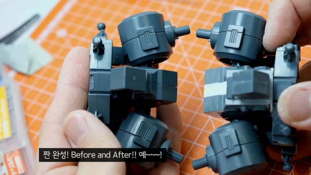 작업포인트는 무릎장갑의 분할 및 디테일, 프레임 수정및 디테일업, 고관절 개수(좌우30Cm연장)로 인한 전체 프로포션 수정입니다.