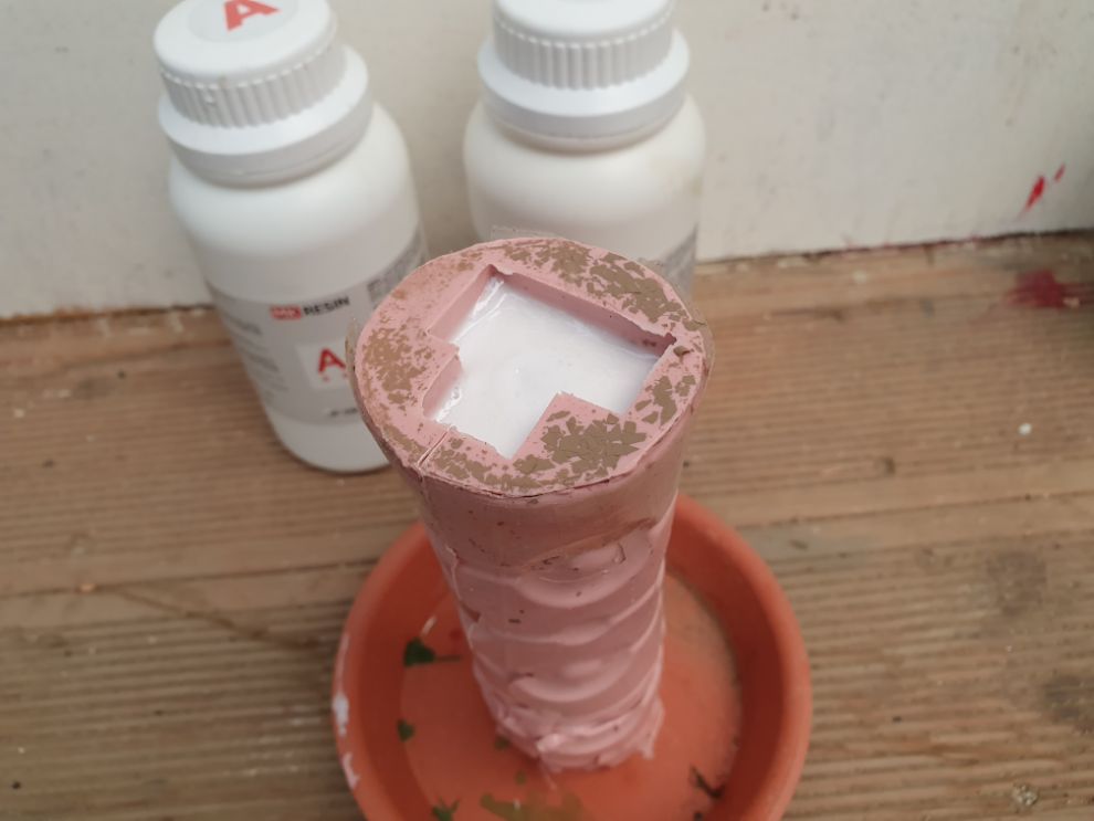 8.주제와 경화제를 섞은 우레탄을 실리콘 튼에 넣어줬습니다.