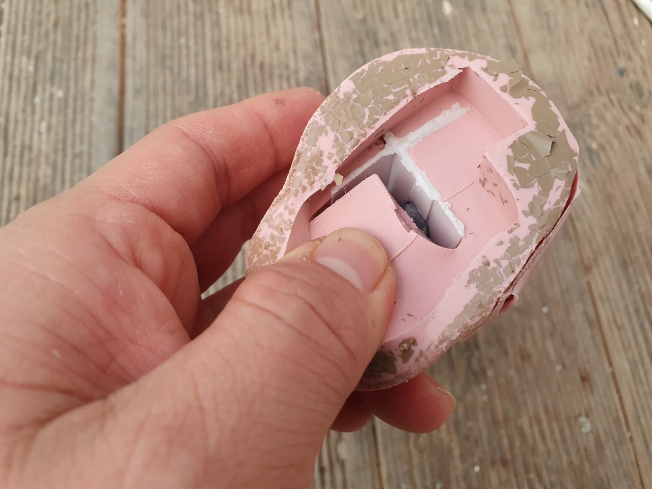 5. 실리콘을 부어서 형틀을 만들기 전에 플라판과 지우개로 하부헐을 아래판에 고정한 모습입니다.