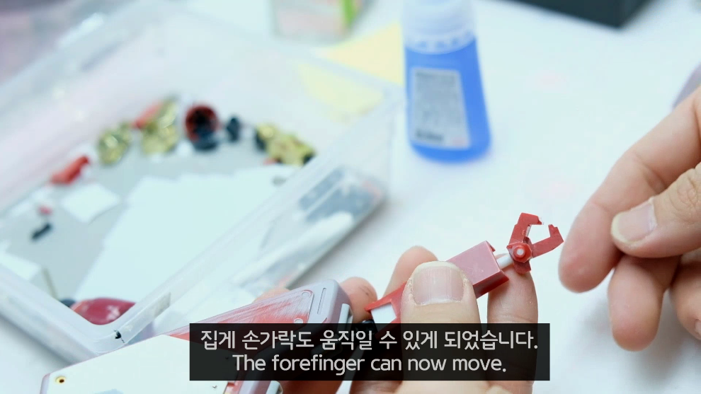 집게 손가락을 3등분으로 분할하여 각각 가동이 가능하도록 만들었습니다.