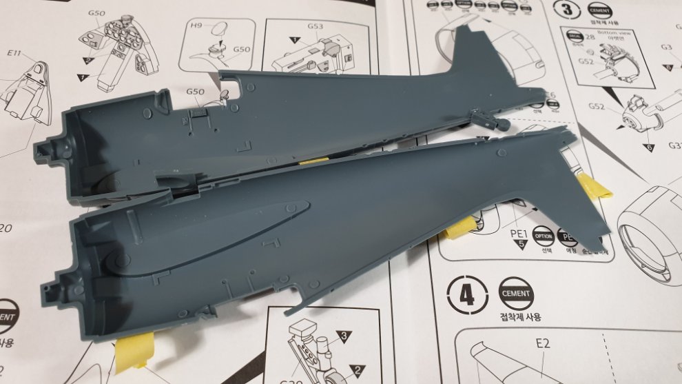 동체. 이 사진 찍고 외부 연료통을 장착하기 위해 도려내야 하는 부분이 있더라구요, 그 부분은 설명서대로 그대로 도려내주었습니다.