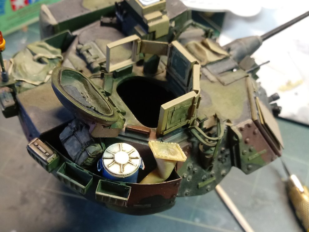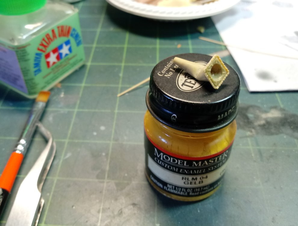 이 CONE은 어른힘으로 좀 세게 누르면 확~ 꺽일 정도의 유연성을 가진 소재이기 때문에 좁은 장갑차 전차의 바스켓에 쑤셔넣기 좋은 물건인것 같고, 그걸 좀 재현해 보고자 CONE의 허리부분을 좀 꺽어줬습니다.