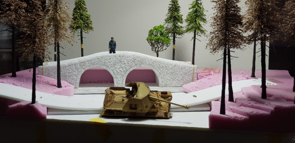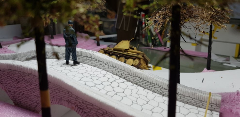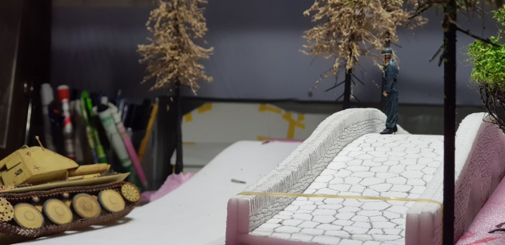 다리위에 인형이 하나 올라가고, 밑에 잠수로에는 전차가 한대 쳐박혀 있는 상황입니다.