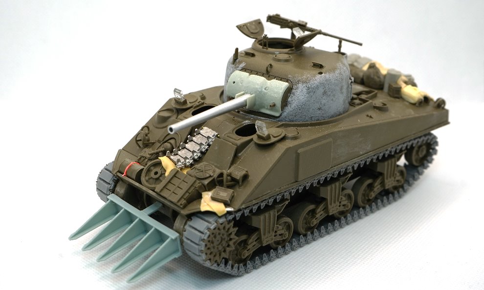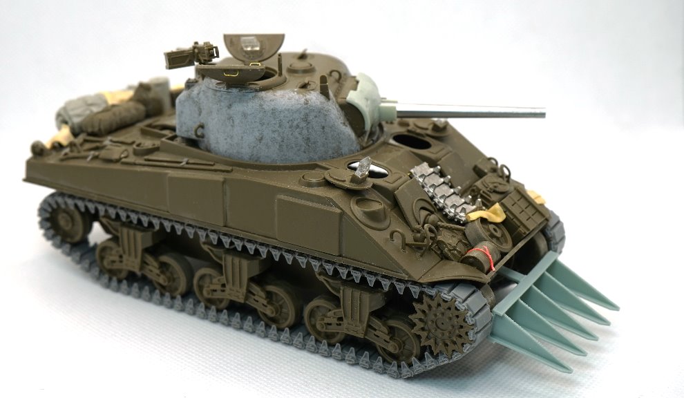 1. 1/35 Tamiya M4 Sherman + MiniArt Track + Def Mantel & Barrel + Def Hedgerow Cutter