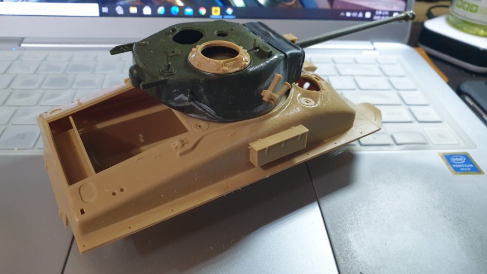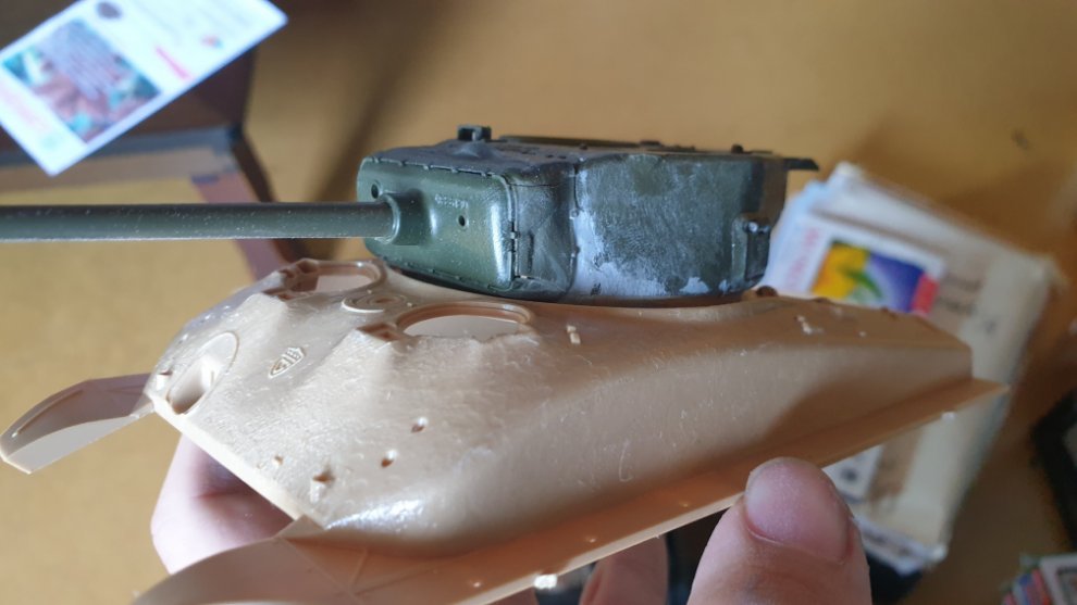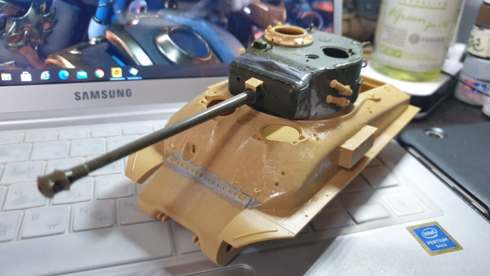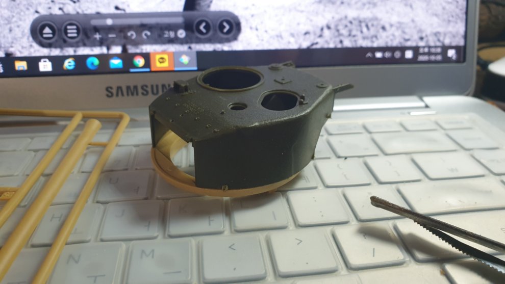 먼저, 그전에 아카데미의 1/35 탱크 프라모델 런너들을 받은적이 있었는데 그게 M10 울버린 런너 한벌이란 셔먼들의 런너였습니다. 유용하게 잘 쓰고 있는데 그중 76mm 포탑 런너에서 76mm 포탑을 가져왔습니다. 포탑링이 안맞길래 밑 부분은 슈퍼셔먼의 것을 유용.