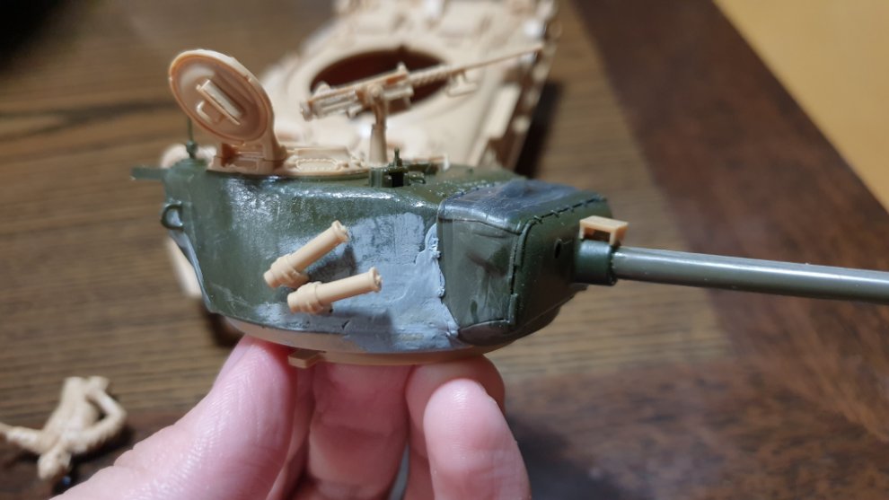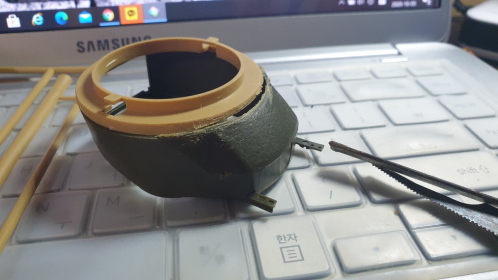 6년전(벌써 6년전...) 영화 퓨리가 개봉하고 디코퍼레이션의 타스카 재포장 이지에잇을 만들면서 생긴 방수포와 포방패 부품들을 궁금해서 조립해본적이 있었는데 그걸 가져왔습니다. 포신은 남는 타스카의 포신을 쓸 예정이구요.