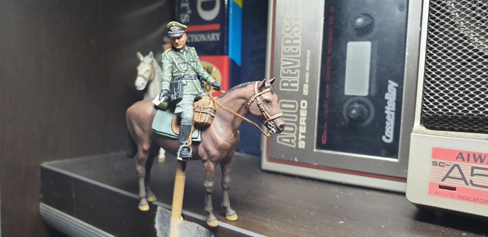 제가 유독 2차대전 당시의 Mounted figure에 꽂혀 있기는 했어도 애초에 이 제품을 구입할 계획은 없었습니다. 하지만 오른쪽 가슴에 은색 견사가 몰드되어있고, 갈색 승용마(bay)를 한 필 더 만들어 보자는 생각이 드는 순간 지름신과 접신하게 되어 바로 질렀죠.
