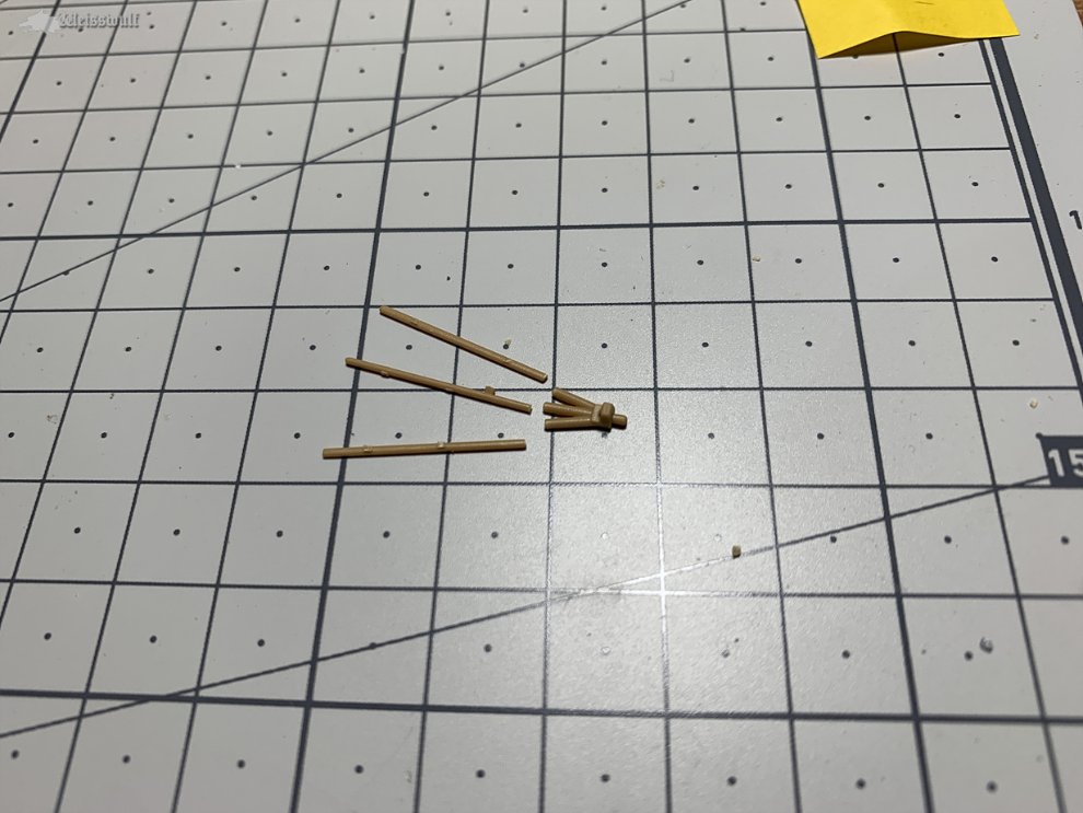 깃발꽂이 부품은 깃대까지 같이 사출돼 있습니다. 깃발을 달지 않을거면 깃대 부분은 잘라내 줘야 합니다.