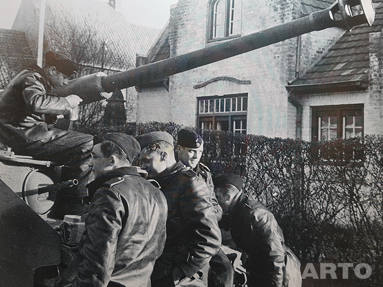 또한 당시 스타일대로 전차병 재킷 목 카라를 가죽 재킷 밖으로 꺼내입고 있습니다.