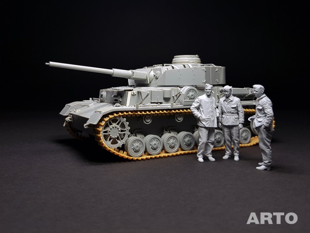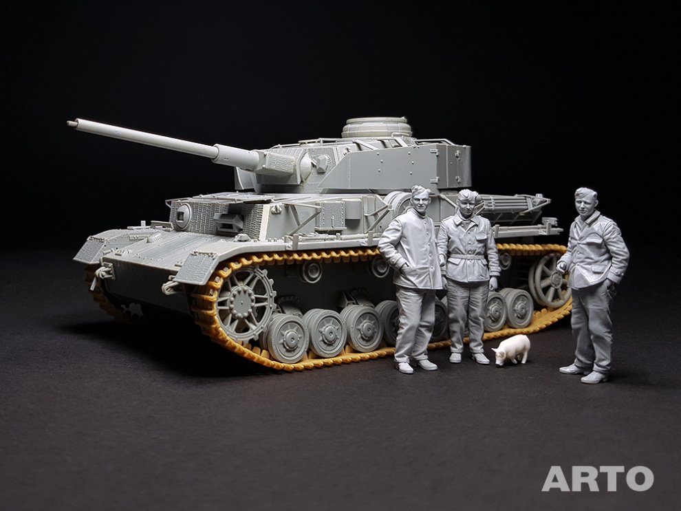 그들은 전차 옆에 서서 이야기를 나누며 대기 중인 상황을 연출하고 있습니다.