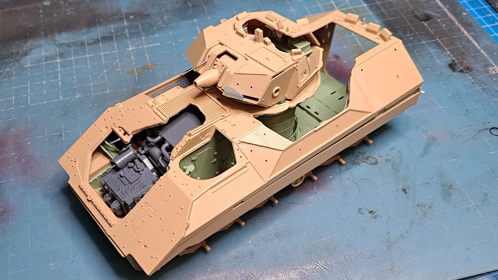 이벤트에 참가한 많은 회원분들께서 벌써 제작 완료해서 다른 작품을 제작 중이신 걸로 알고 있는데 저는 겨우 이제 내부 인테리어 조립을 마쳤습니다. 아~~ 언제 완성 시키나? 괜히 이걸 꺼냈나? 내 무덤을 내가 팠지라는 후회도 되지만 지금 하지 않으면 영원히 봉인될 키트이기에 어제까지 열심히 니퍼와 아트나이프를 휘두르며 조립을 완성했네요... 다만 다행인 것은 외부는 별로(?) 할 게 없다는 것과 도색은 원래 대충 하기 때문에 시간이 좀 있지 않을까 하는 저의 상상의 나래를 펼쳐봅니다... 저는 풀 인테리어 키트를 너무 좋아해서 타이거, 판터,T-34, T-55 등등 인테리어 키트는 엄청 사놨는데 이놈 완성되면 계속해서 만들어 봐야겠습니다.
