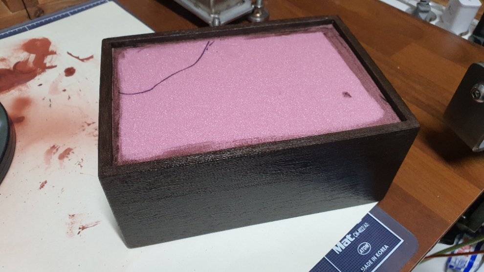 바닥 다리는 잘라버리고, 수성 스테인으로 마감후, 아이소 핑크로 기본 베이스를 만들 었습니다