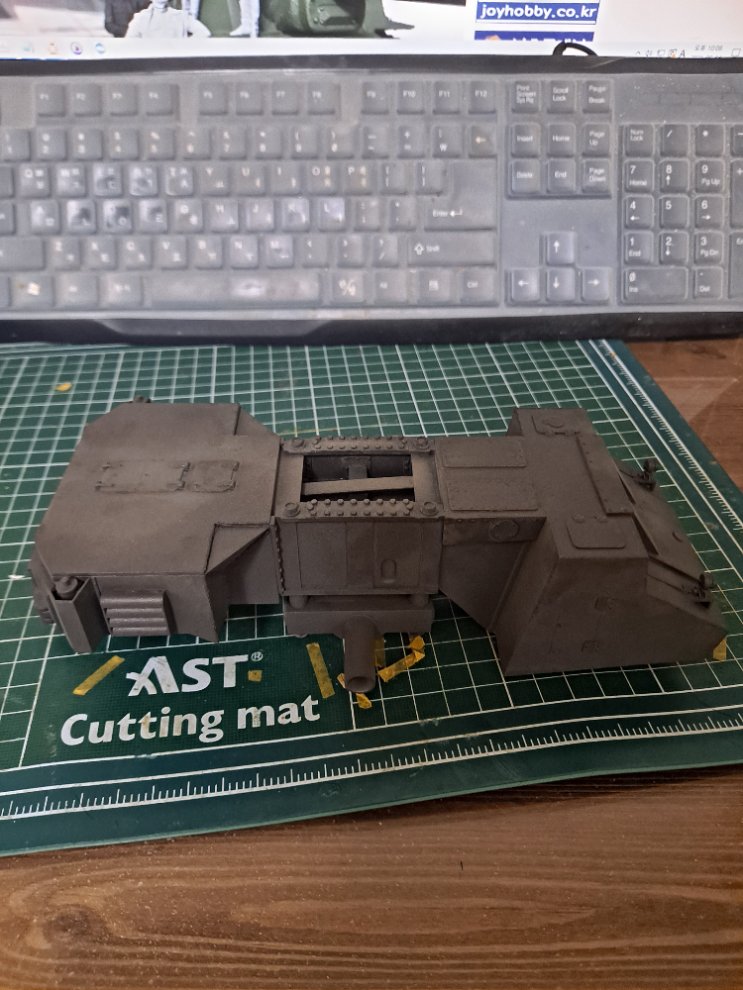 틈틈히 한 두달간 조립을 하였고 오늘 타미야 아크릴 다크아이언을 서페이서겸 밑바탕 색으로 에어브러시로