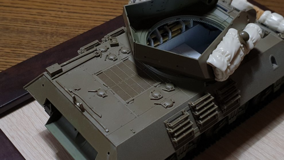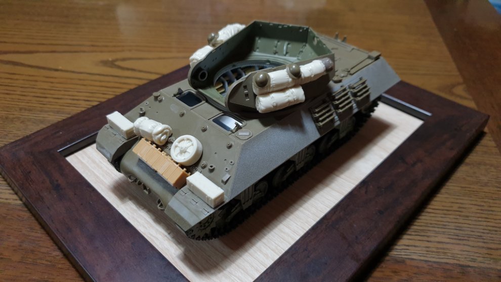 그런데 한가지 아쉬운 점은 차체 어느쪽 해치든 열어놓고 M10 울버린&아킬레스, M36 잭슨 종류에서 볼 수 있는 차체 전방 헤드라이트 옆에 있는 안테나를 런너 늘린 선 같은걸러 붙히면 플라스틱이라는 재료, 부품에 대한 한계?로 인해 포탑을 장착 할 수 없습니다. 제가 순간적으로 안테나를 자작해 붙혔다가 포탑을 못단다는 사실을 깨달고 바로 때어버렸죠. 물론 이 문제는 모든 메이커가 마찬가지 입니다. 메이커 잘못이 아니긴 하죠. 즉 그만큼 뭐라고 할 만한게 없다는것입니다. ㅎㅎ