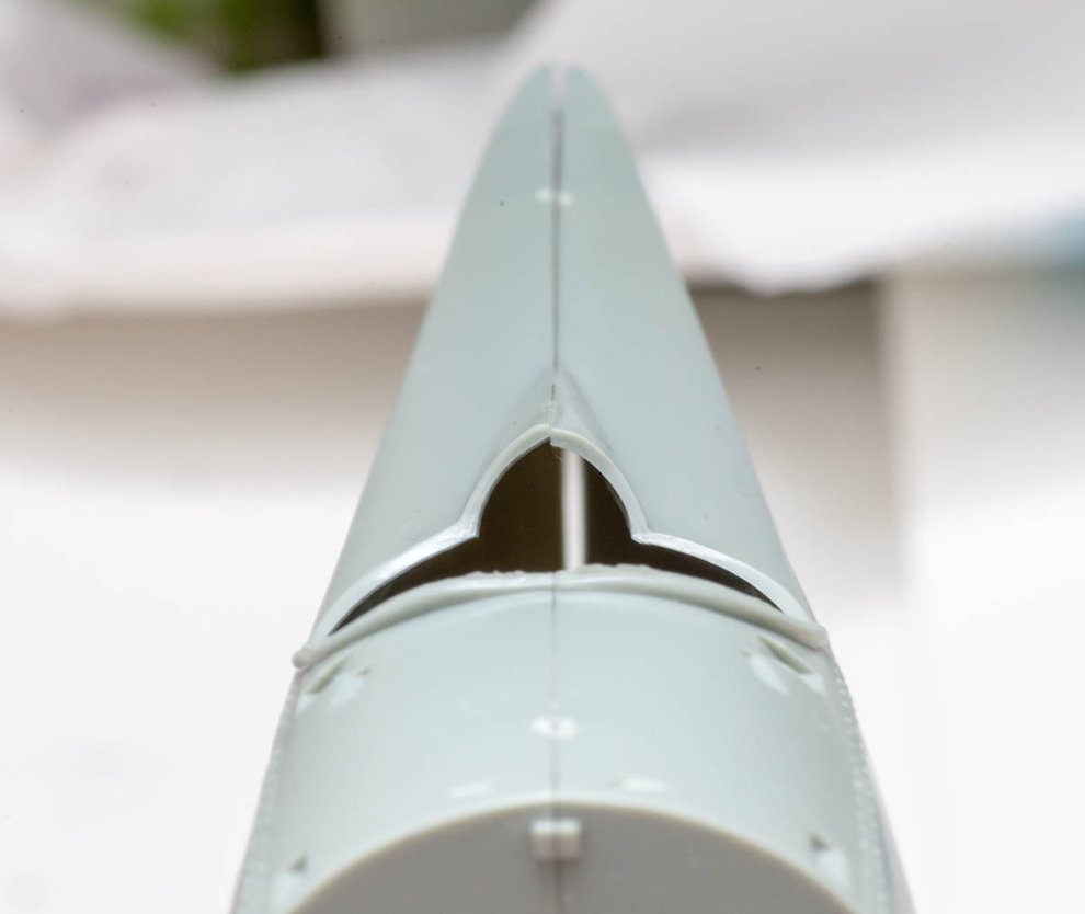 6. 동체는 살짝 어긋나는 수준입니다. 힘을 주면 강제로 맞출 수 있지만, 플라스틱 키트 특성상 또 쉽게 어긋날 수 있으므로 그냥 순리에 따라 붙여준 후, 사포로 조심스럽게 갈아주는 편이 안전합니다. 다행이 퍼티를 바를 정도로 크게 어긋나는 수준은 아닙니다.