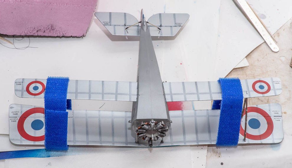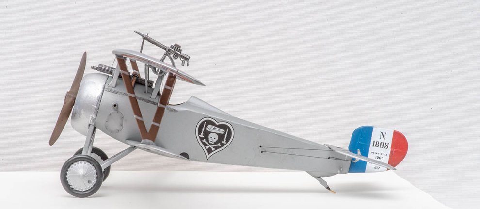 7. 1차 대전 비행기의 날개는 발사우드 뼈대에 캔버스 천을 덧대서 꼬매는 구조였기 때문에, 해가 밝은 날이면 밑에서 올려다보면 속까지 전부 비쳐보이는 재질이었습니다. 대전 말기에 가서야 전부 나무판으로 된 비행기 (SPAD 후기형의 일부 날개) 가 출시되는데요. 그래도 모든 비행기가 다 투명하게 보인 건 아니고, 흰색이나 미색 계열만 잘 보였지, 빨간색이나 초록색 같은 진한 색은 거의 보이지 않았습니다. 뉴포르도 햇빛으로 인한 열화 방지를 위해 반사가 잘되는 은색 페인트를 발랐기 때문에 거의 투과되지 않는 날개에 속하므로, 제가 위와 같이 페인트한 건 고증에 어긋나는 셈입니다.