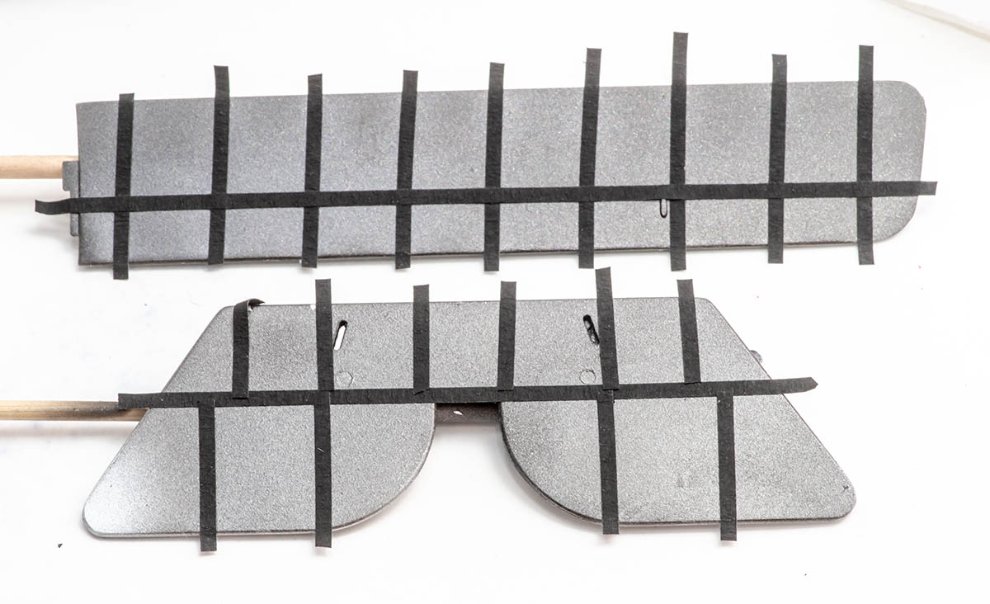 12. 꼬리 세로날개도 동체와 체결하는 기믹이 전혀 없어서 막막합니다. 할 수 없이 0.50mm 구멍을 뚫고 황동심을 박아서 동체와 연결했습니다.