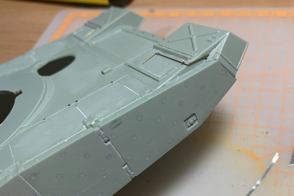 매우 얕게 몰드돼 있는 해치 아래 공간도 최대한 파 내 주고, 생략된 디테일이 많은 전차장해치도 적당히 디테일을 추가해 줬습니다.
