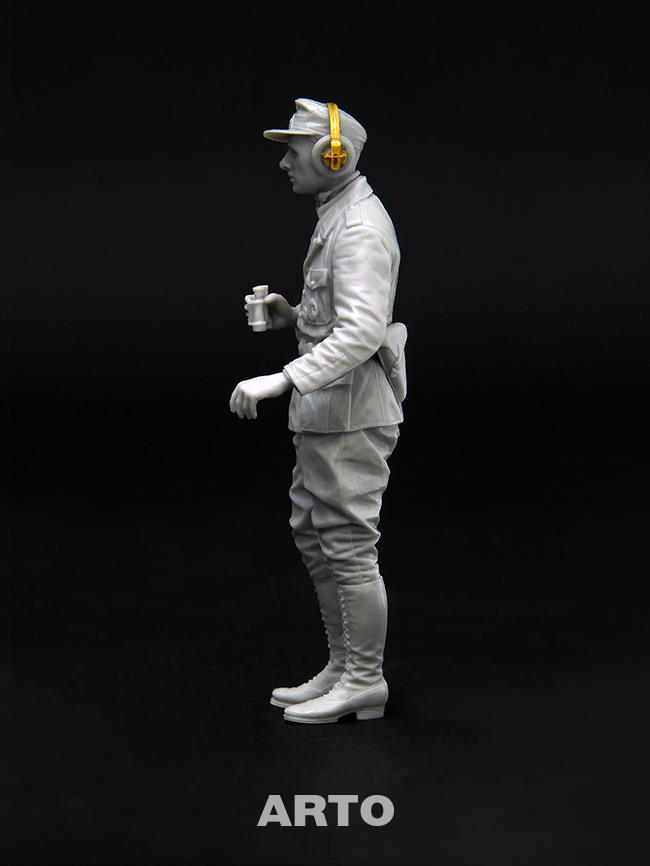 이 인형은 전차에 탑승 중인 상태를 표현한 만큼 헤드폰과 마이크로폰을 모두 착용하고 있습니다. 그리고 보다 사실적인 재현을 위해 헤드폰의 연결구는 에칭으로 포함되어있습니다.