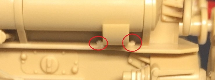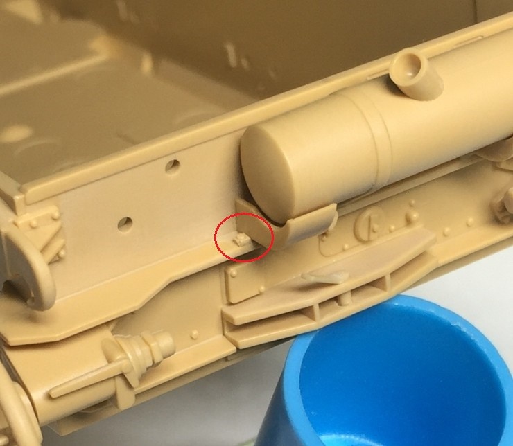 타미야 제품에는 빨간 원 부분의 작은 부품이 생략되어 있습니다.