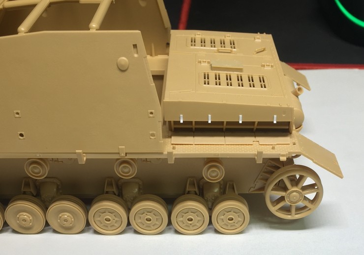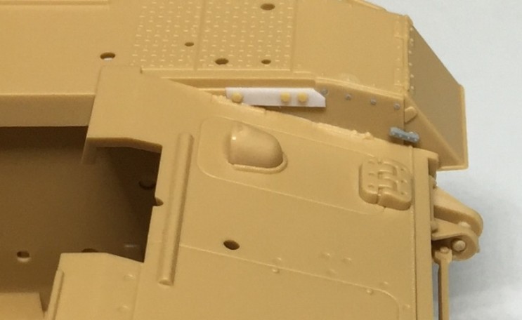 환풍구 쪽 플랩을 덮을 때 쓰는 부품으로 보이는 돌기가 키트에는 생략되어 있습니다.