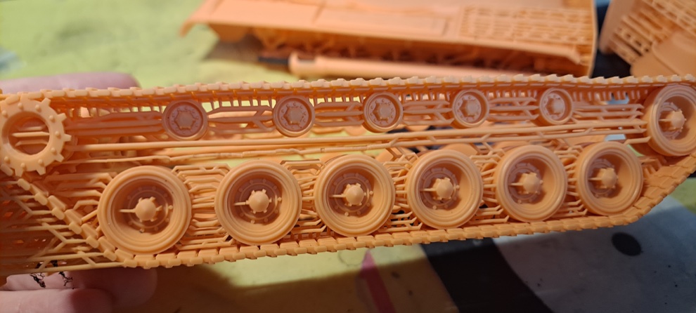 레진스케일즈의 3D 모형입니다. 어지럽게 런너가 배치되어 있습니다. 트랙과 바퀴, 기동륜은 모두 일체입니다.