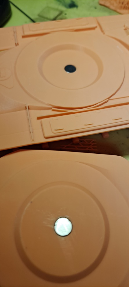 차체와 포탑은 네오디뮴 자석으로 결합하여 회전이 가능하게 하고 있습니다. 자석을 넣을때 극성을 잘 맞출 필요가 있습니다.