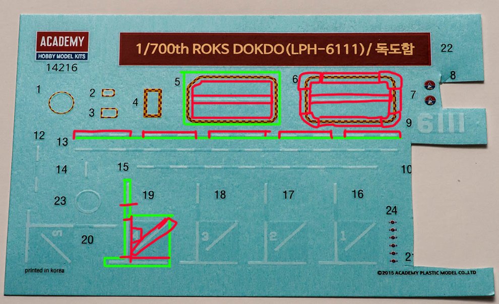 이 글은 아카데미 독도함 1/700 키트와 현재 구입할 수 있는 Tetra model 디테일업 포토에칭 키트로 작업하실 분들을 위해 제가 작업하면서 확인한 부분을 요약한 글입니다. 이미지 업로드 한계상 세세한 것까지 전부 올릴 수는 없지만 굵직한 것들만 담아봤습니다.