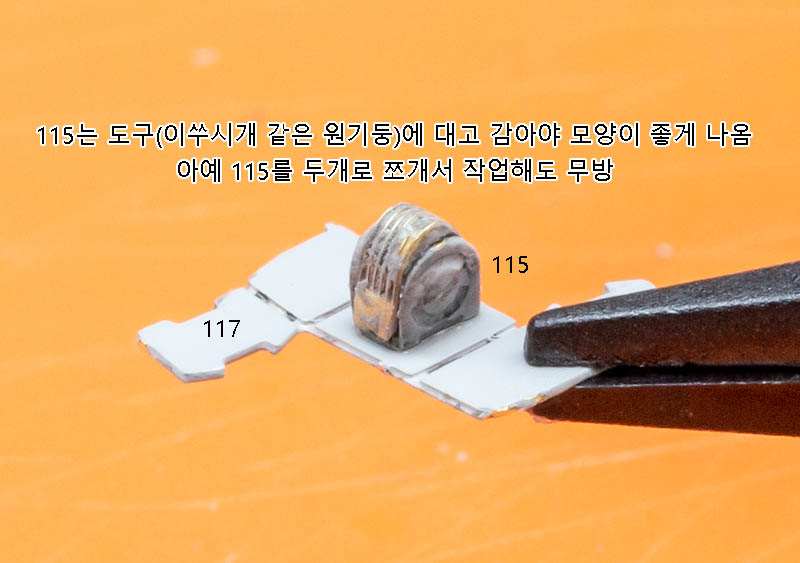 부품에 따라 동그랗게 모양을 만들라는 것도 있습니다. 이런 건 원통이나 구슬에 대고 굴리면서 형태를 잡아야 하는 골치아픈 물건입니다. 미리 주위에 물건을 준비해두세요.