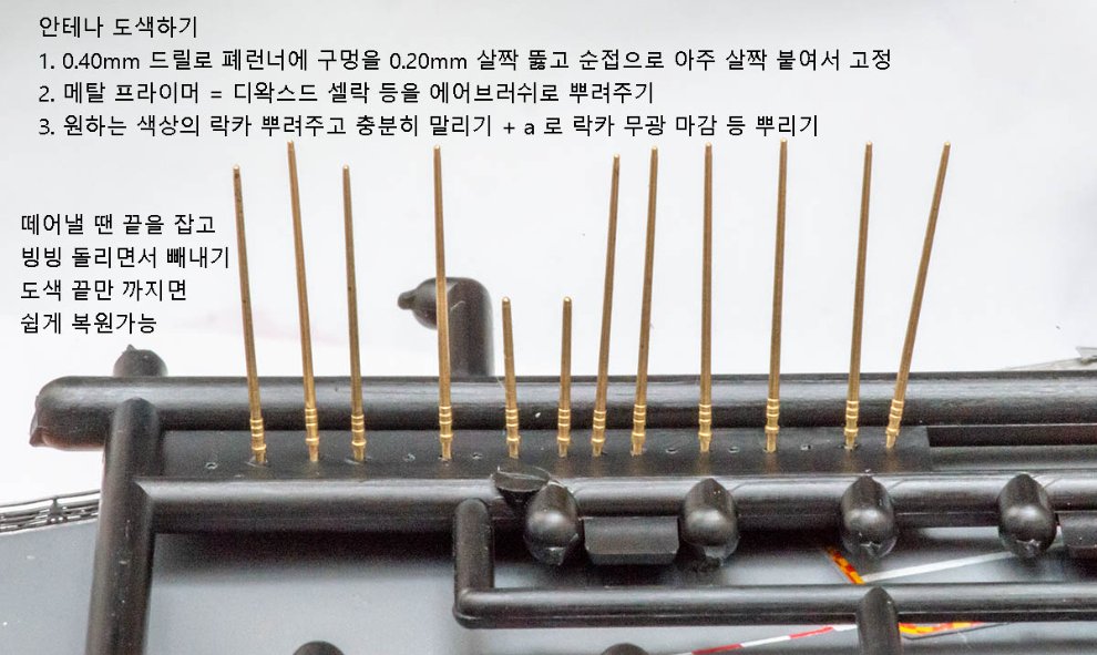 함교의 안테나탑은 아카데미에서 제공하지만 매뉴얼엔 안 나와있는 더 디테일한 부품을 써서 조립해야 합니다. 제가 쓴 아래 제작기를 보세요.