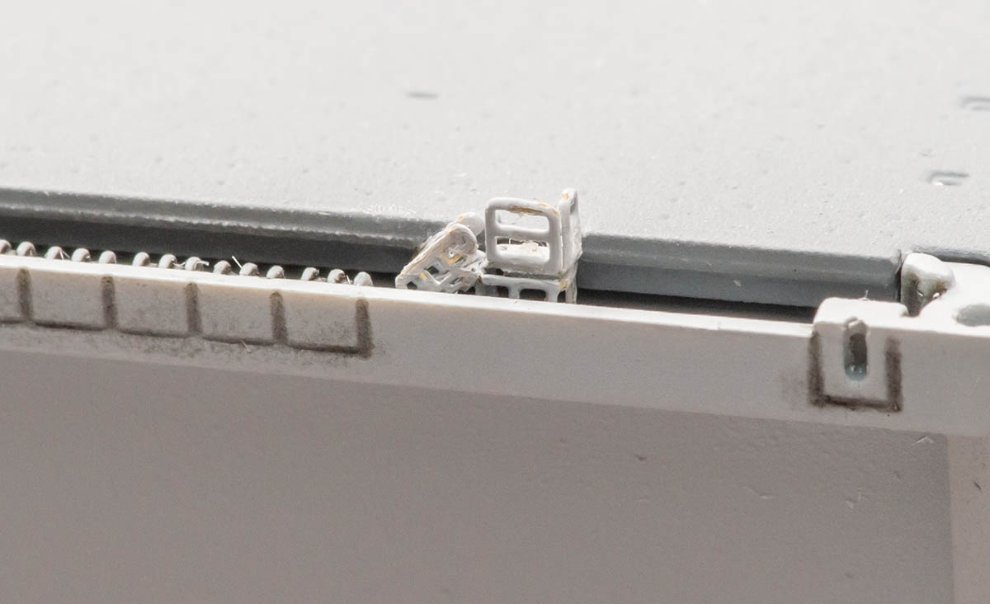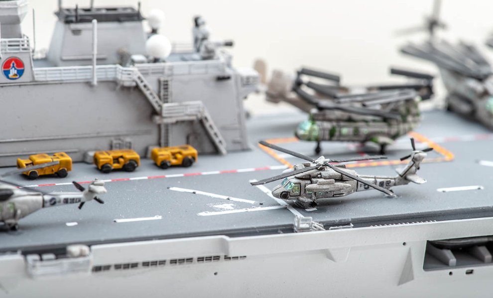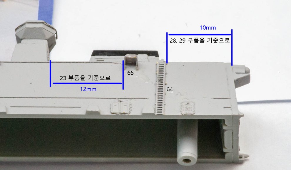 제가 안전철책과 whip 안테나를 전부 눕힌 이유는 갑판 위가 풀로드인 전투배치이기 때문입니다. 보관 공간을 줄이려는 목적, 또는 다른 컨셉으로 만드실 분은 자신만의 독도함을 만드시면 됩니다.