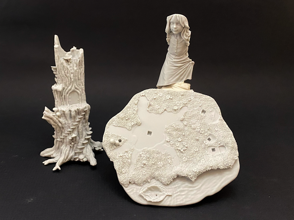 인형 머리카락은 금발로 잡고, 번트 움버와 옐로우 오우커, 흰색 조합입니다.