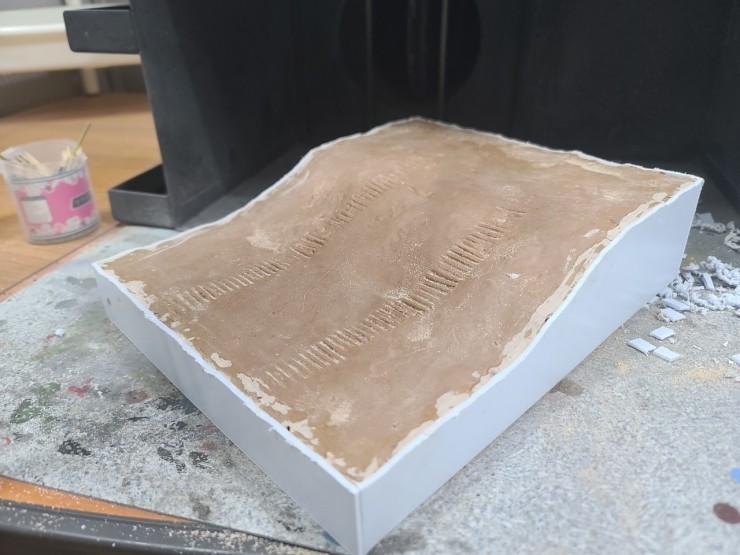지형작업 기본재료는 아이소핑크를 이용합니다 아무래도 아이소핑크가 두께가 있다보니