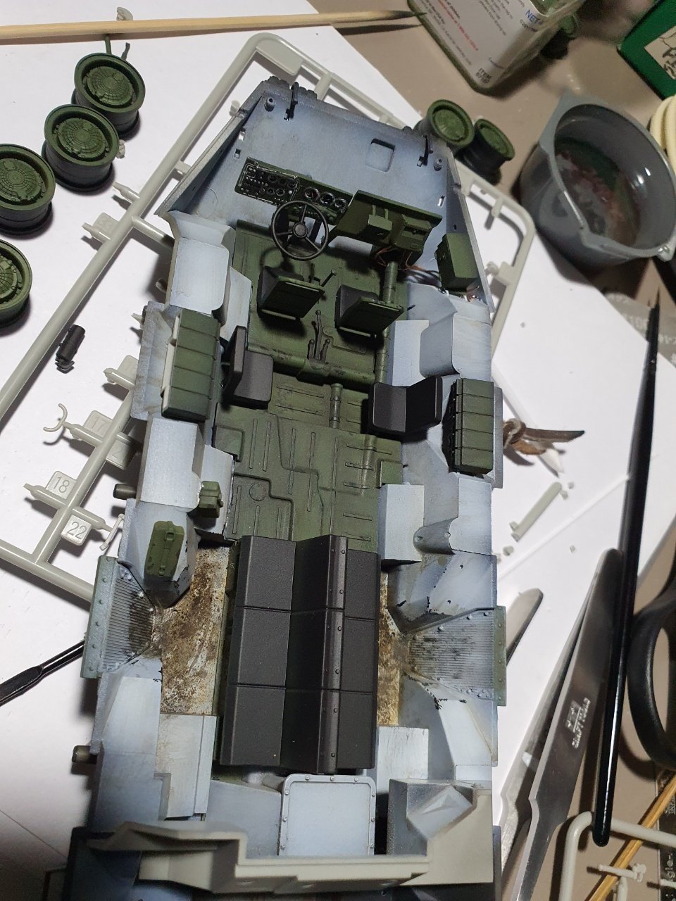 실내는 지정대로 도장을 했습니다. 워싱과 웨더링을 일부 진행했습니다. 해치를 통해서 보일만한 곳에만 진행을했습니다. 자연스러운 웨더링이 정말 어렵다고 생각합니다.