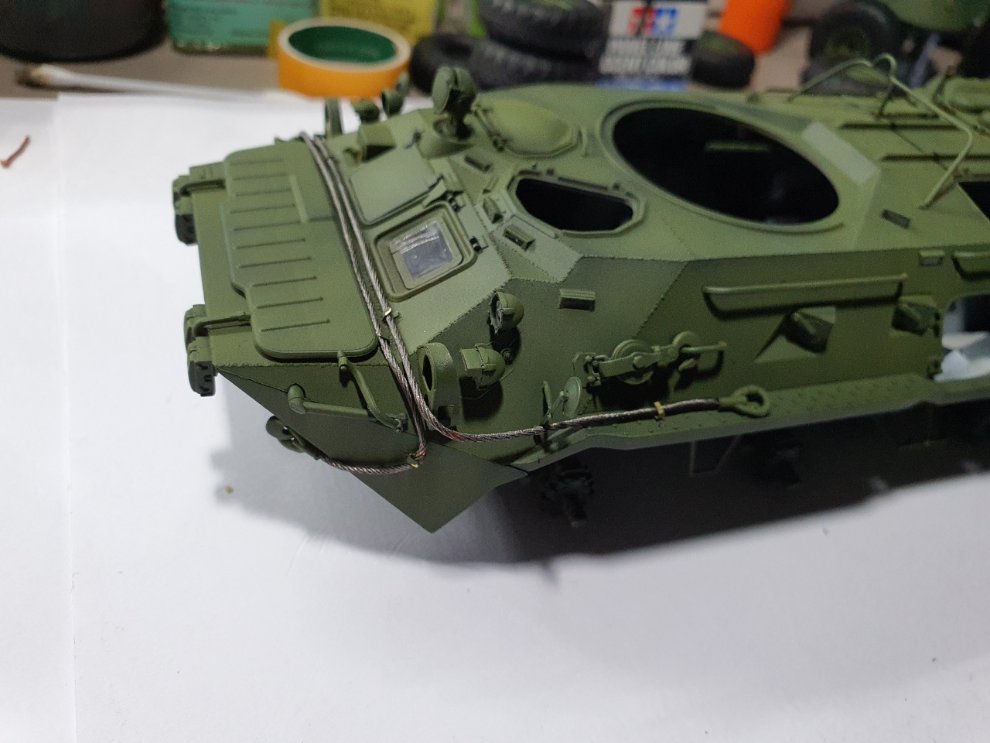 견인케이블은 구리케이블로 들어있었습니다. 그런데 길이를 제시해 주지 않아서 차량에 대고 눈대중으로 잘라서 조립을 했는데 막상 접착하려고 보니 조금씩 짧아져서 아주 난감했습니다 임기응변으로 -_-; 넘어갑니다. 트럼펫의 이러한 감성이 점수를 깎아먹게 되는것 같습니다.