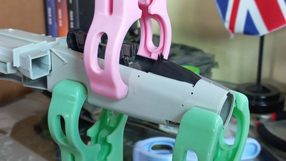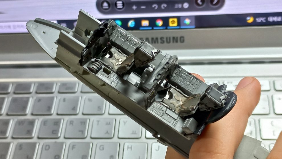 어제는 콕핏만 제작했습니다. 데칼 접착력이 좋지 못해서 타미야 마크핏 슈퍼 스트롱을 위에 발라주고 다른 키트들의 데칼에 쓰던것처럼 면봉으로 살살 눌러주거나 안경닦이로 살살 눌러줬더니 그대로 데칼이 면봉이나 안경닦이에 들러붙고 들고 일어나버리는 일이 발생해서(지금도 생각하기 싫네요 ㅠㅜ) 조금 힘들었네요.