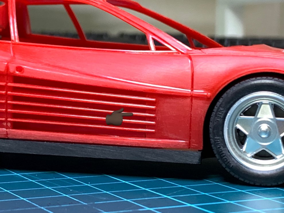 이 화살표의 파팅라인은 원래 실차에는 없기때문에 제거해주기로 했습니다.