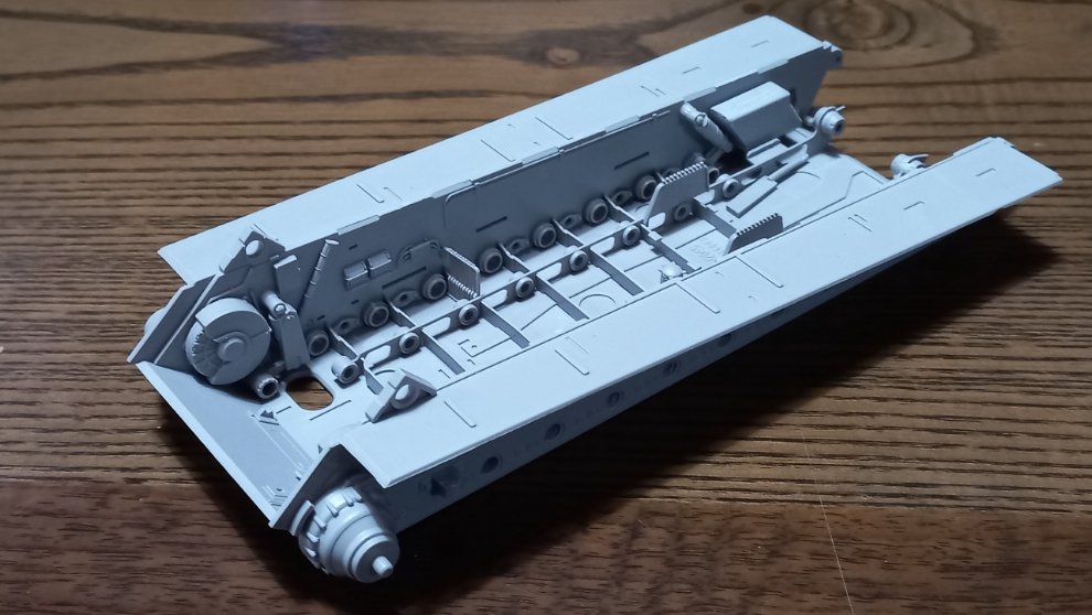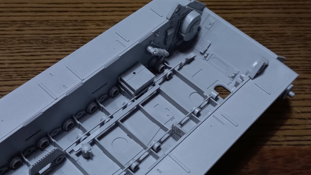 내부는 딱히 유격이랄까 그런건 없는데 이 상태에서 상판과 가조립을 해봤는데 Hull은 안쪽으로 살짝 휘어있는 모양이고, 상판은 바깥으로 조금 휘어져 있습니다. 그 부분을 조심하면 될 것 같아요. 그리고 내부 재현의 특성 답게 만들면서 "실제 공장에서 조립하는것도 이런식이였을까? 그리고 여긴 왜 이 부품이 있는거지?" 하는 생각도 들고 재밌었습니다.