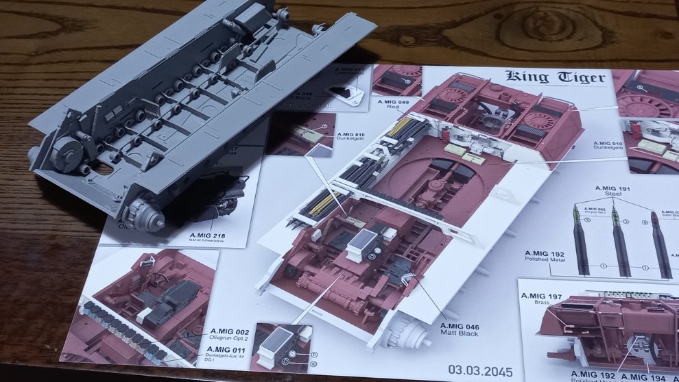 내부 재현 특성상 중간 중만 칠하면서 만들어야 편할 것 같아 필요한 도료를 구매할 때 까지 레벨 1/48 토네이도 IDS처럼 중단해야 할 것 같습니다. 그리고 이 킹타이거(와 디오라마)는 저의 첫 하비페어 출품을 목표로 하고 있는데 계산해보니 2024년? ~ 2025년 하비페어로 예상되네요. 그때는 코로나도 끝났을 것이라 믿습니다. 저의 첫 하비페어 출품작... 저의 첫 에어브러시 사용 키트... 뭔가 "저의 첫" 수식어가 많이 붙을 것 같네요.