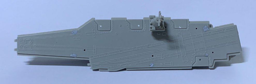 갑판 부분입니다. 전사지나 스티커는 없기 때문에 마스킹해서 도색해야 합니다. 선체 가이드핀이 들어가는 부분은 퍼티를 바른 상태입니다.