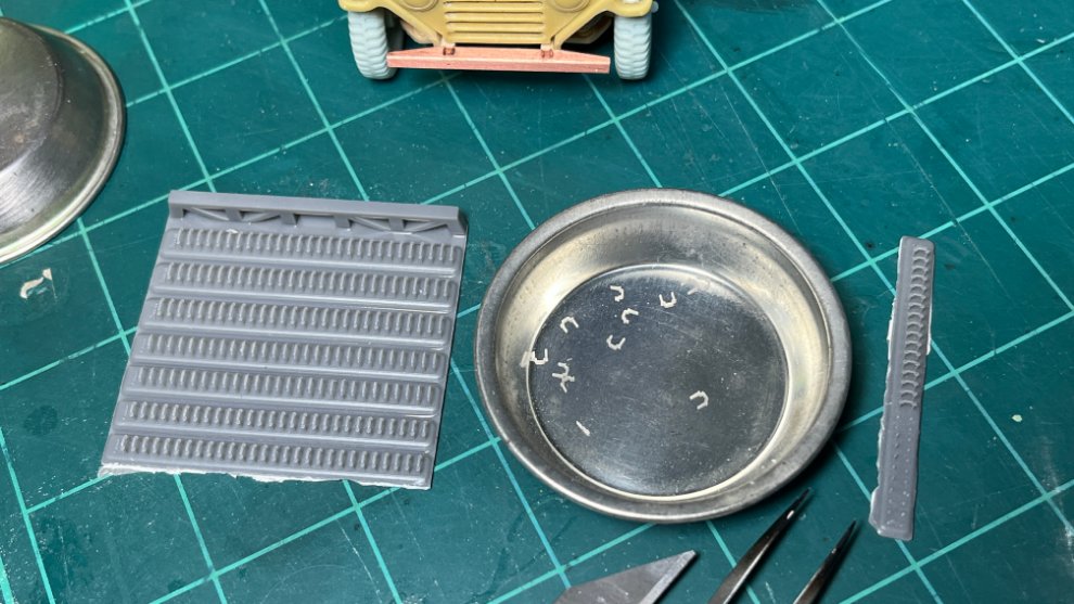 일반적인 승용차와 다르게 이 MUTT는 엔진후드(보닛)를 어중간하게 들어올려서 고정하거나 그런것은 없이 닫혀있거나 앞유리에 닿을정도로 확 제껴놓거나 두가지가 전부더군요. 그래서 이렇게 살짝 들어올려져 있는 것은 고증상으로는 말이 안되는데, 엔진룸은 만들어놨지만 확 제껴놓자니 엔진룸의 배선을 만들어넣어야 한다는 생각이 들어서 도통 내키지가 않았습니다. 디오라마에서는 엔진룸에 워셔액을 채워넣으려고 엔진후드를 들어올리는 중의 장면으로 연출하려고 합니다.