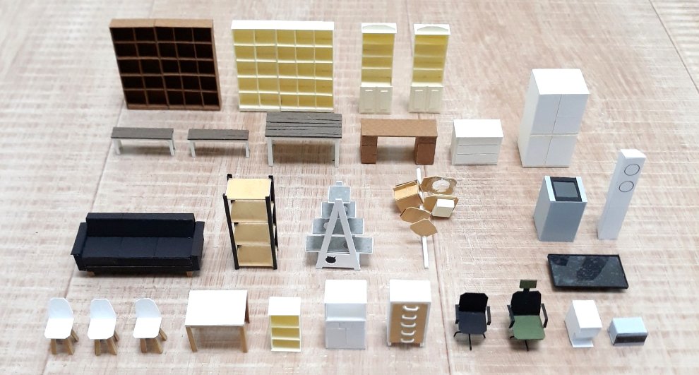디테일을 높이기 위해서 가전과 가구를 만들어서 위치에 붙입니다.