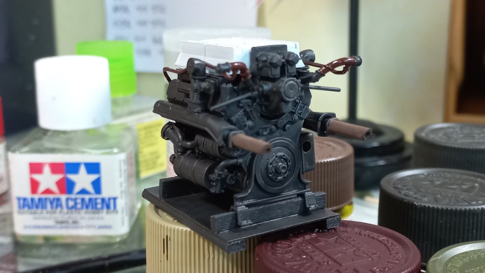 엔진도 칠해봤습니다. 다크 아이언으로 칠했는데 사진으로 보면 어둡네요.