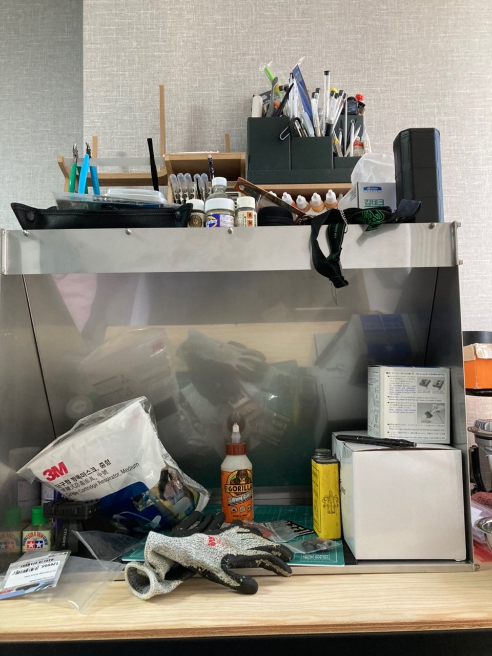 발주 실수로 60, 40, 50cm급 연결이 되는 스페어가 더 딸려와서 1.27미터짜리 초대형 스프레이부스로 쓸지 개별적으로 분리해서 여러 장소에 넣고 쓸지 고민하다 전문 공방에 보냈었는데 거기서도 사이즈가 너무 크다고 결국 다시 회수하게 됐습니다