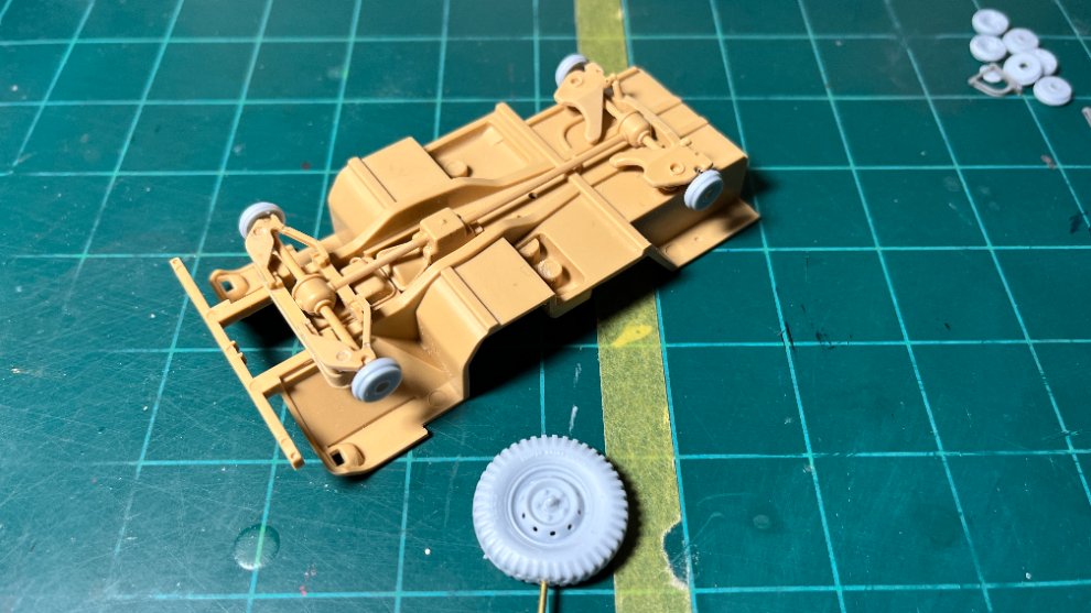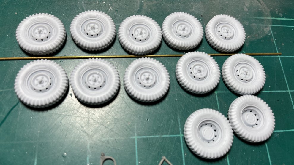 그사이에 DEF Model에서 M151A2용 레진제 휠타이어가 신제품으로 발매되어서 적용해주었습니다. 예전에 나온 제품도 훌륭했지만 좀 더 리얼한 느낌이어서 정말 훌륭합니다. 휠 부위에 얇은 막처럼 되어있는 구멍은 모두 핀바이스로 뚫어주었습니다.