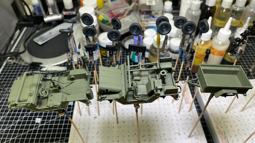 좌측 앞바퀴만 갈색인 휠도 도장해주고, 국방색은 Olive Drab보다는 IPP의 Vietnam Dark Green이 딱 알맞는 색이어서 칠해주었습니다.